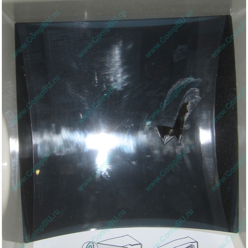 Есть косметический дефект: слегка пробита пластмассовая полупрозрачная накладка - на работу не влияет.