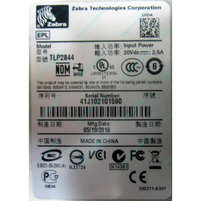 Термопринтер Zebra TLP 2844 (слегка пробита крышка в Внуково, без БП!) - Внуково Изображение большего размера