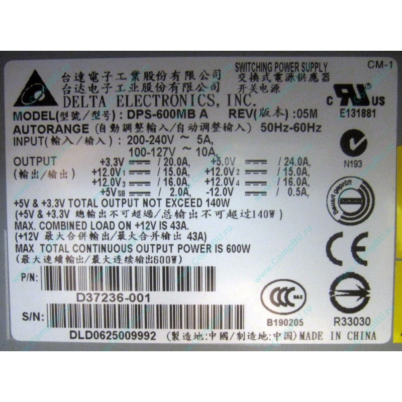 Блок питания: Delta Electronics DPS-600MB A (Rev: 05M) p/n: D37236-001, мощность 600 Вт (24+8pin).